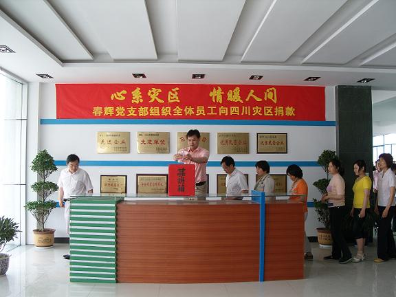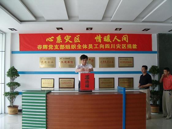 2008年5月12日14時(shí)28分,在四川省汶川縣發(fā)生一場(chǎng)里氏8級(jí)的特別重大地震災(zāi)害,造成了人民生命及財(cái)產(chǎn)損失等重大災(zāi)情,災(zāi)區(qū)、災(zāi)情牽動(dòng)著每位春輝人的心,公司高層第一時(shí)間向每一位員工發(fā)出震災(zāi)捐助倡議書(shū),得到大家的積極響應(yīng)。