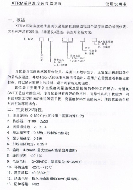 XTRM系列溫度遠(yuǎn)傳監(jiān)測儀新產(chǎn)品說明書: