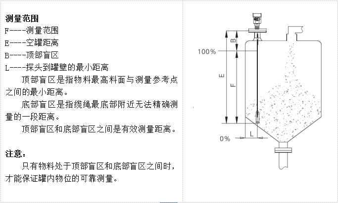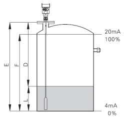 通過輸入空罐高度E(=零點),滿罐高度F(=滿量程)及一些應(yīng)用參數(shù)來設(shè)定,應(yīng)用參數(shù)將自動使儀表適應(yīng)測量環(huán)境。對應(yīng)于4-20mA輸出。