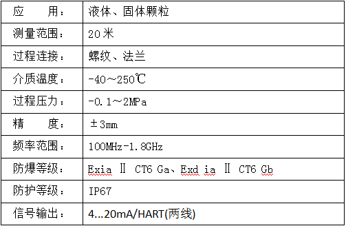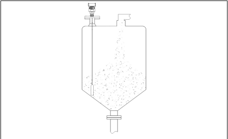 反射的脈沖信號沿纜繩傳導(dǎo)至儀表電子線路部分,微處理器對此信號進(jìn)行處理,識別出微波脈沖在物料表面所產(chǎn)生的回波。正確的回波信號識別由智能軟件完成,距離物料表面的距離D與脈沖的時間行程T成正比: D=C×T/2 其中C為光速