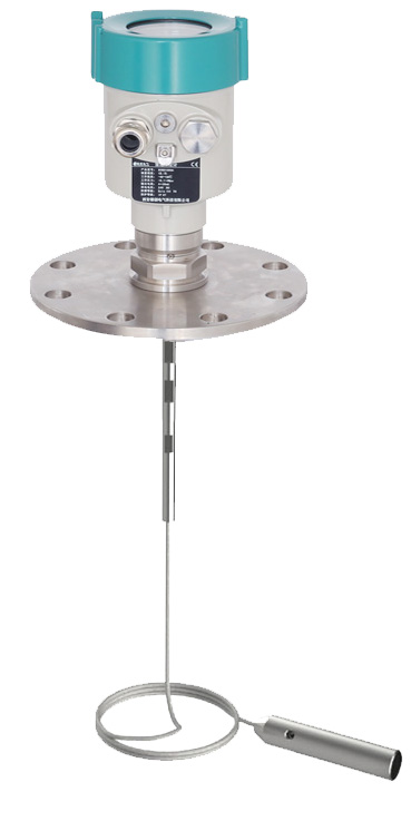 導(dǎo)波雷達(dá)是基于時間行程原理的測量儀表,雷達(dá)波以光速運行,運行時間可以通過電子部件被轉(zhuǎn)換成物位信號。探頭發(fā)出高頻脈沖并沿纜式探頭傳播,當(dāng)脈沖遇到物料表面時反射回來被儀表內(nèi)的接收器接收,并將距離信號轉(zhuǎn)化為物位信號。