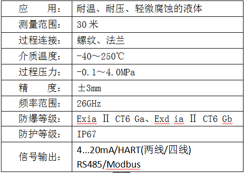 HHRD系列傳感器是26G高頻雷達(dá)式物位測量儀表,輸出4-20mA模擬信號,測量****距離可達(dá)70米。 天線被進(jìn)一步優(yōu)化處理,新型的快速的微處理器可以進(jìn)行更高速率的信號分析處理,使得儀表可以用于:反應(yīng)釜或固體料倉非常復(fù)雜的測量條件。